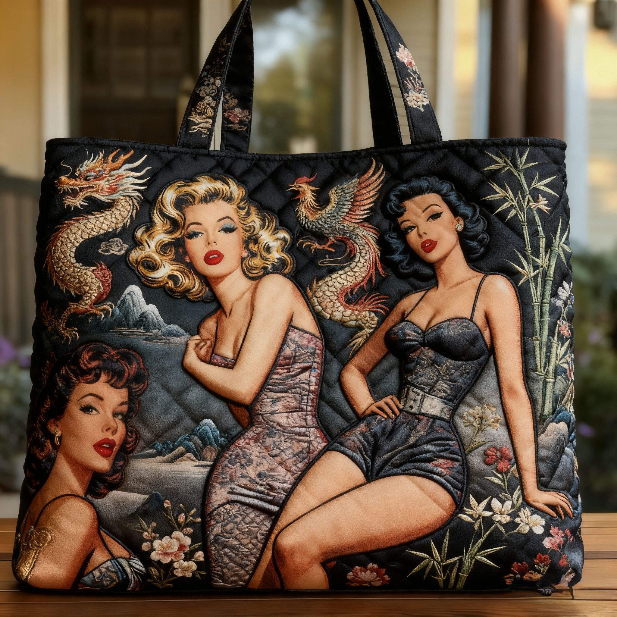 Vintage 1950s Girl Art Print Sewing Tote Bag